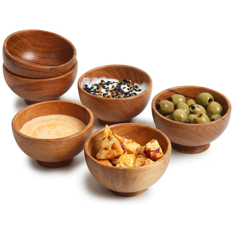 Aangepast Logo Acacia Houten Kleine Kommen Met De Hand Gesneden Kleine Houten Dompelkommen Voor Saus Bulk Kleine Houten Kommen